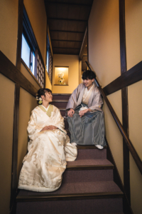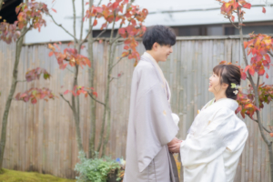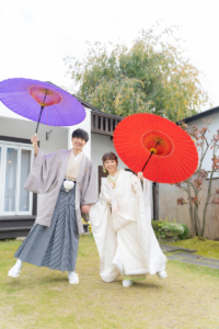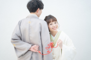 小指と小指を結んだ赤い糸。白無垢に赤いお色が映えますね(*^^*)