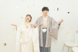 コンフェッティ―もお持ちになっていたおふたり♡力を合わせてこんなにかわいい1枚を撮影できました*。